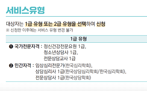 - 정신건강복지센터, 대학교상담센터, 청소년상담복지센터, Wee센터/Wee클래스 등에서 심리상담이 필요하다고 인정되는 자